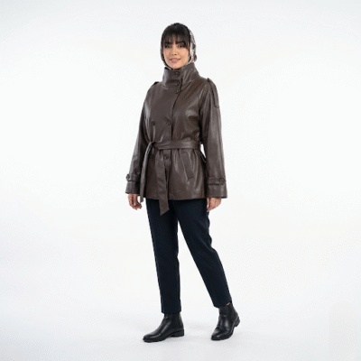 ترنچ کت چرم زنانه یقه ایستاده رابینا رجحانی rojhani2026