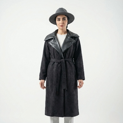 ترنچ کت زنانه یقه چرم تایتان رجحانی rojhani 2026