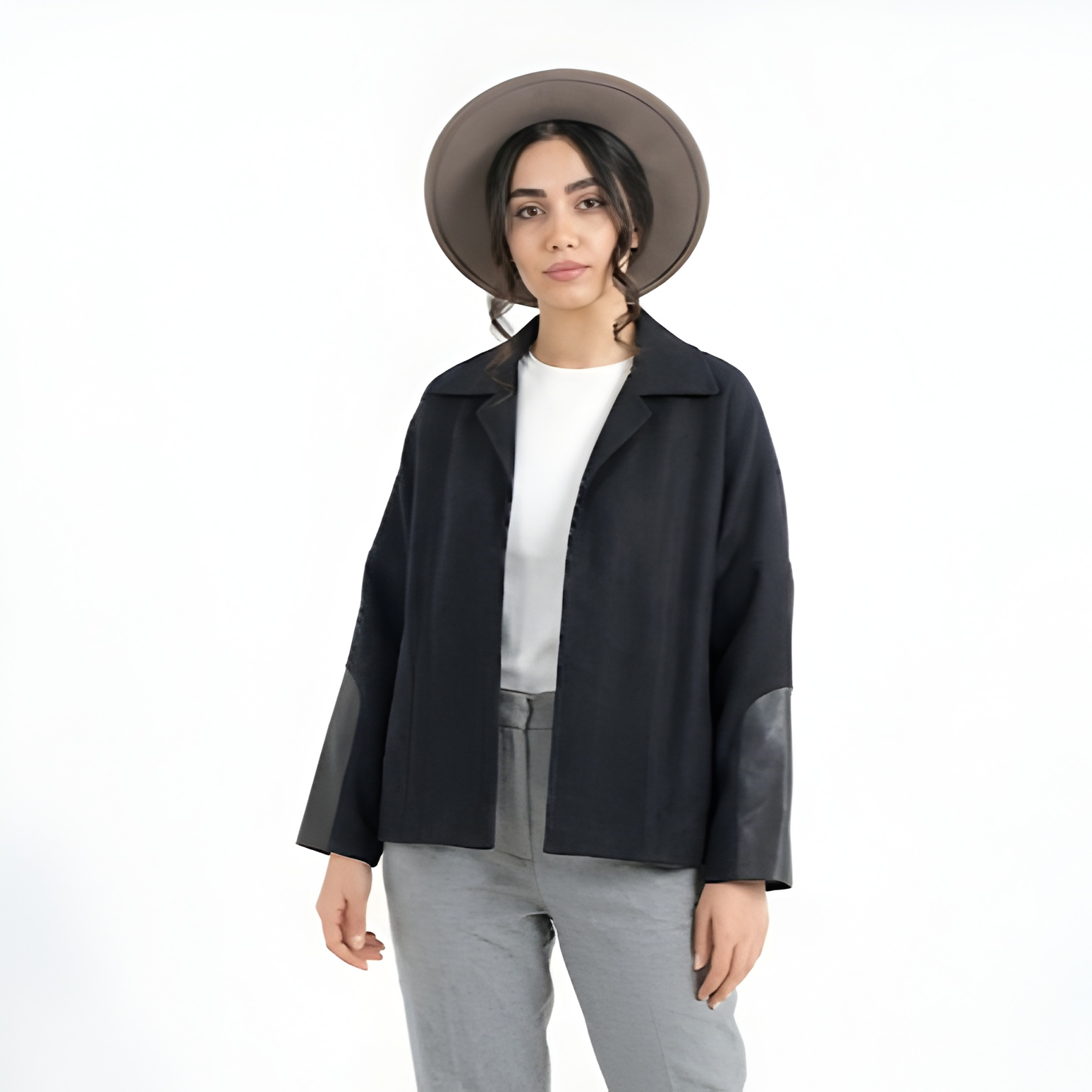ترنچ کت میکرو زنانه آستین چرم دایسیکا رجحانی ROJHANI 2025